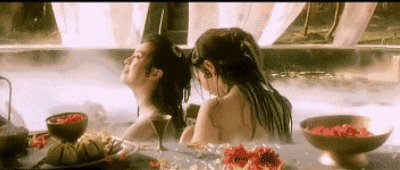 小白和小青在家中洗澡,許仙路過時不小心看到王祖賢的嫣然一笑。